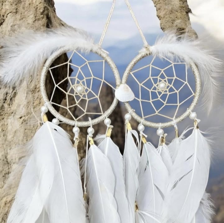 Magnifique Attrape-Rêves fabriqué en Inde à la main avec beaucoup de soin, en forme de Hibou, représentant la Sagesse. L’Attrape-Rêves représente la protection. Placé au dessus du lit, il absorbe les mauvais rêves et laisse passer les bons à travers le filet.