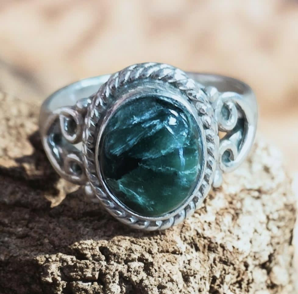 Bague en Seraphinite et Argent 925. Tres prisée en lithothérapie. Voici ses vertus détaillées :