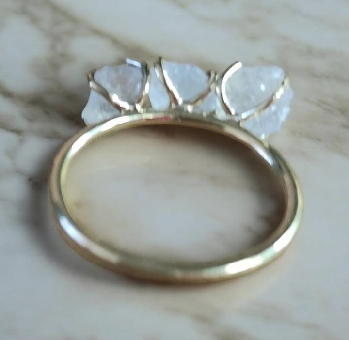 Bague en Pierre de Lune et Olaqué Or. La pierre de lune aide à lutter contre la stérilité et les déséquilibres hormonaux. Elle adoucit le caractère en couple, favorisant la compréhension mutuelle, tout en développant l’activité spirituelle, l’intuition et l’imagination. Pierre de la féminité.