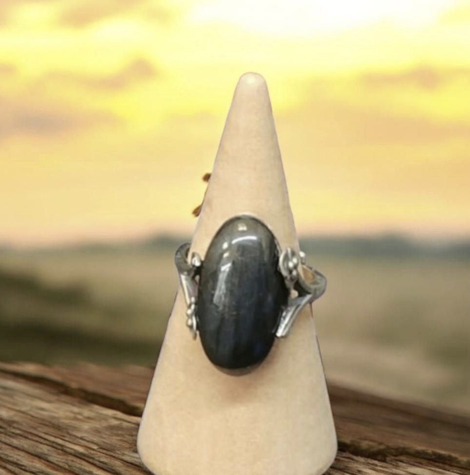 Bague réglable en argent 925, avec une pierre naturelle en Labradorite. La Labradorite est une pierre qui protège les personnes empathiques des problèmes des autres. Elle développe les dons et stimule les facultés d’auto-guérison. Elle favorise les amitiés . Pierre de Protection.