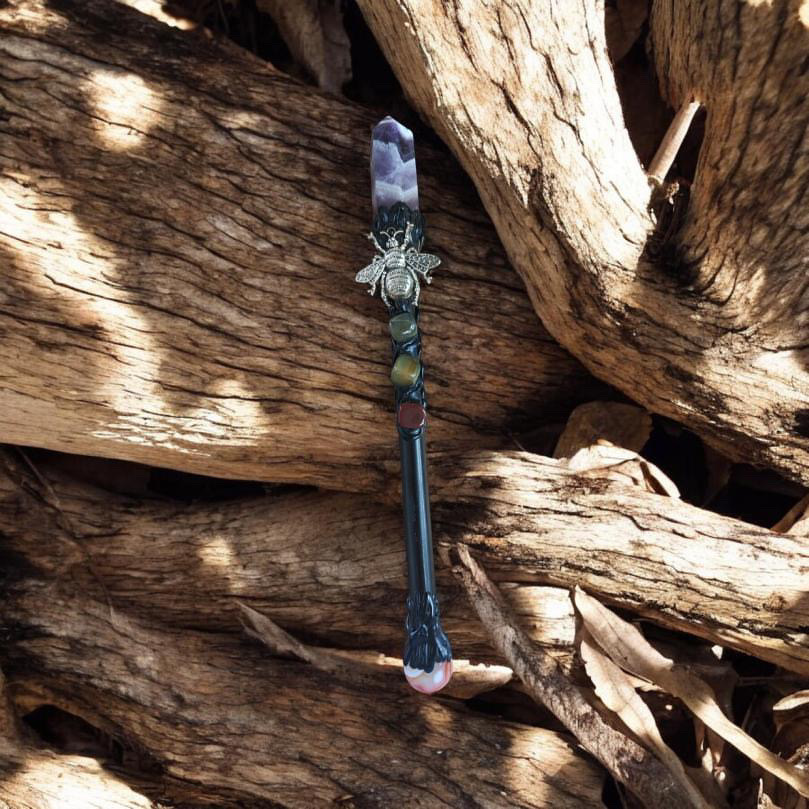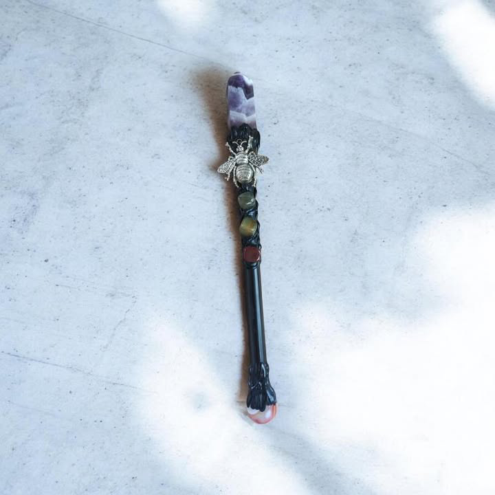 Cette baguette a été réalisée à la main avec des pierres naturelles, pour accompagner vos rituels, vos soins énergétiques ou vos moments de méditation.