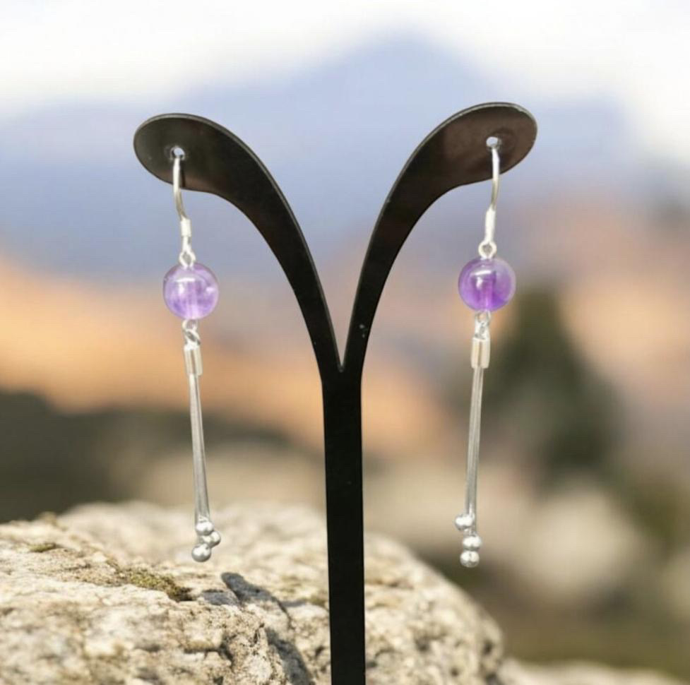 Boucles d’oreilles en Argent 925 et Améthyste de haute qualité. L’Amethyste nettoie l’Aura et équilibre les énergies des corps physique, mental et émotionnel. Elle redonne confiance en soi et aide à surmonter les périodes difficiles. Elle aide à lutter contre les addictions. Elle favorise un sommeil réparateur. Pierre de la spiritualité.