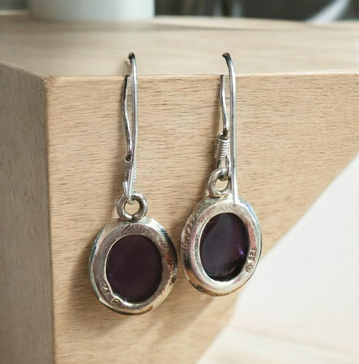 Boucles d’oreilles en Argent 925 et Améthyste de haute qualité. L’Amethyste nettoie l’Aura et équilibre les énergies des corps physique, mental et émotionnel. Elle redonne confiance en soi et aide à surmonter les périodes difficiles. Elle aide à lutter contre les addictions. Elle favorise un sommeil réparateur. Pierre de la spiritualité.