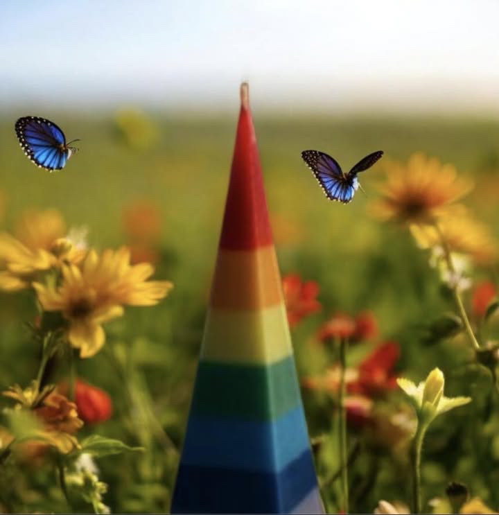 Bougie en forme de pyramide, équitable et non parfumée, fabriquée à partir de cire de palme durable. Durée de combustion : 20-24 heures.