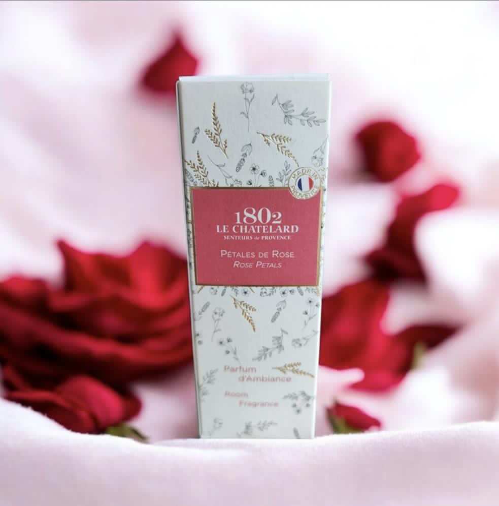 La brume d’oreiller aux Pétales de Rose de Le Chatelard 1802, est un parfum d’oreiller spécialement conçu pour créer une ambiance légère et plonger notre imaginaire dans les jardins fleuris.Sans colorant ni conservateur. Cette brume contient seulement de l’eau, de l’alcool et du parfum. L’odeur de la brume d’oreiller est délicate et très agréable, un bel équilibre qu’on aime sentir avant de s’endormir.