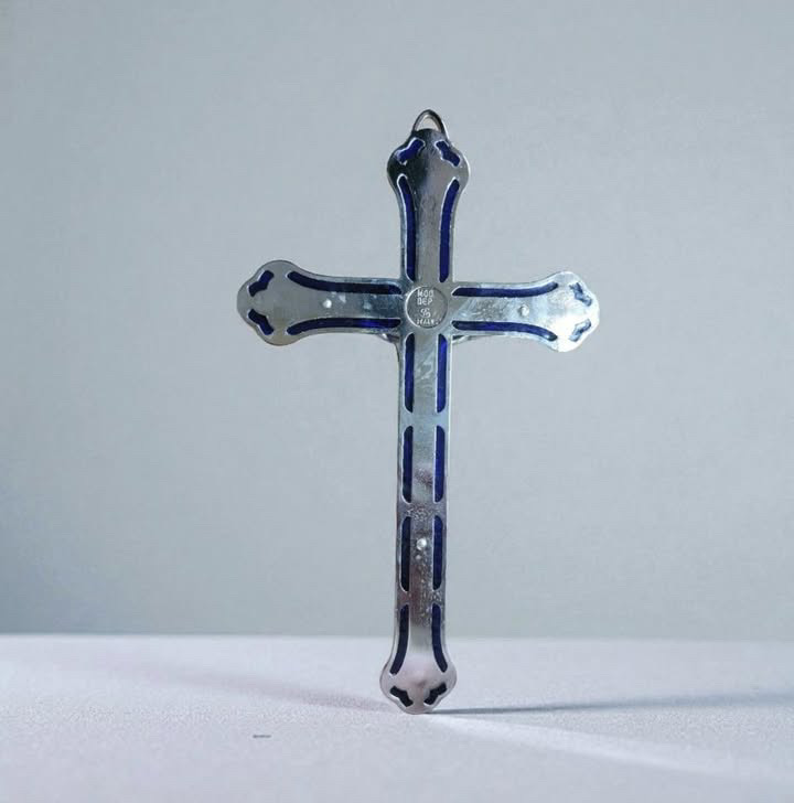 Ce crucifix en métal allie élégance et profondeur spirituelle. Le Christ couleur argenté est finement travaillé, rehaussé de touches de résine bleue et rouge, apportant raffinement et subtilité à l’ensemble.