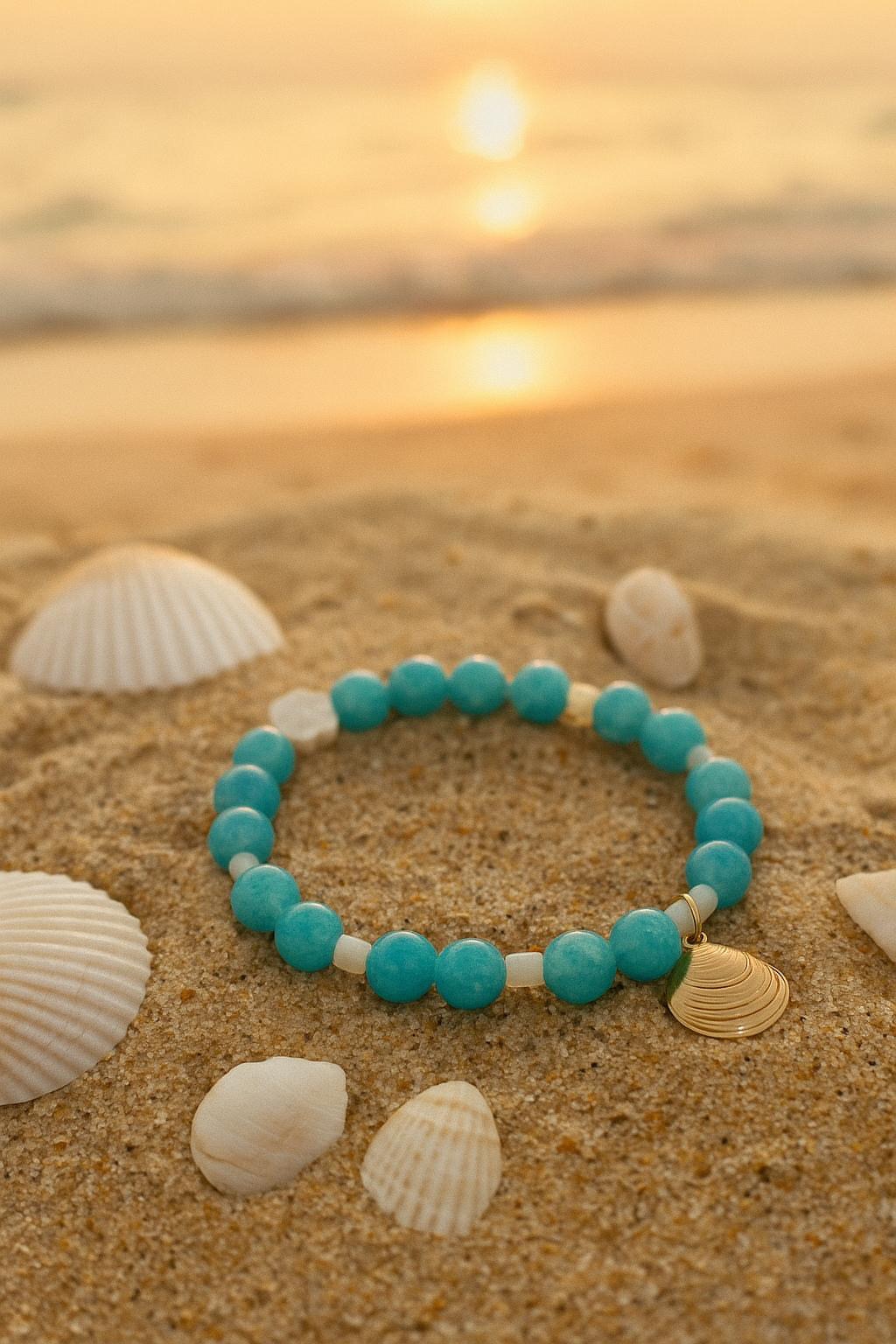 Voici une nouvelle version de mon bracelet “Écume d’Oléron”, désormais orné d’un délicat coquillage doré en acier inoxydable, symbole d’accueil, d’écoute intérieure et de lien profond à la mer.