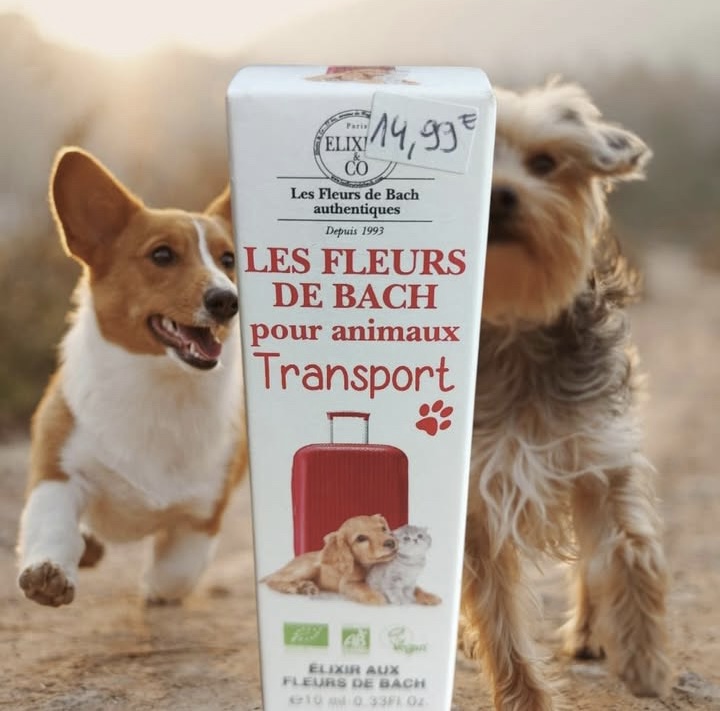 Élixir Transport pour Animaux aux Fleurs de Bachest recommandé pour les animaux anxieux, en panique lors d’un déplacement ou sujets au mal des transports ( tremblements, miaulements ou aboiements plaintifs …). Le plus : un format pratique et nomade.