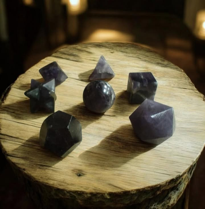 Ensemble de 7 pièces de géométrie sacrée en Améthyste