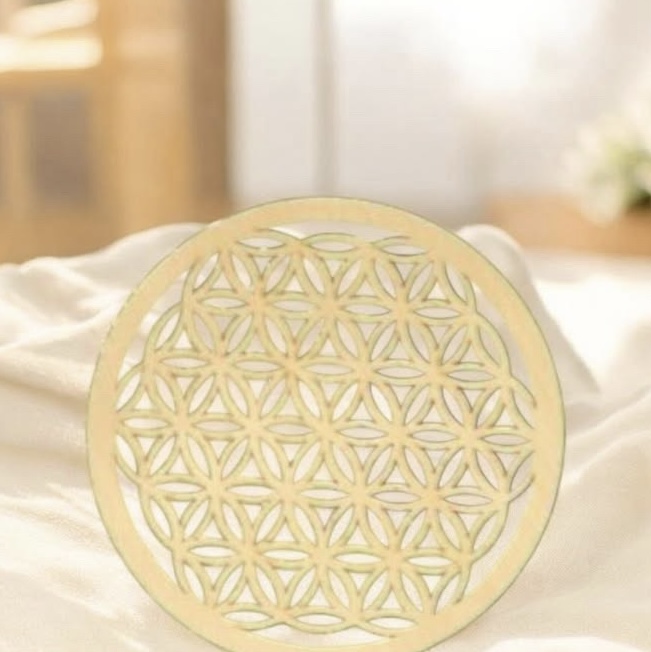 Fleur de vie en bois. La fleur de vie représente le renouvellement perpétuel de la vie et contribue à la réharmonisation constante.