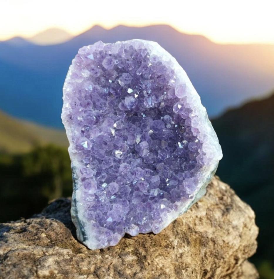 Cette géode d’Améhyste a été sélectionnée avec une grande attention. Cette pièce est unique. L’Améthyste a un rayonnement très puissant dans la pièce où elle se situe. La géode vous procurera détente, paix et harmonie dans le lieux où elle se trouve. Elle favorise l’élévation spirituelle.