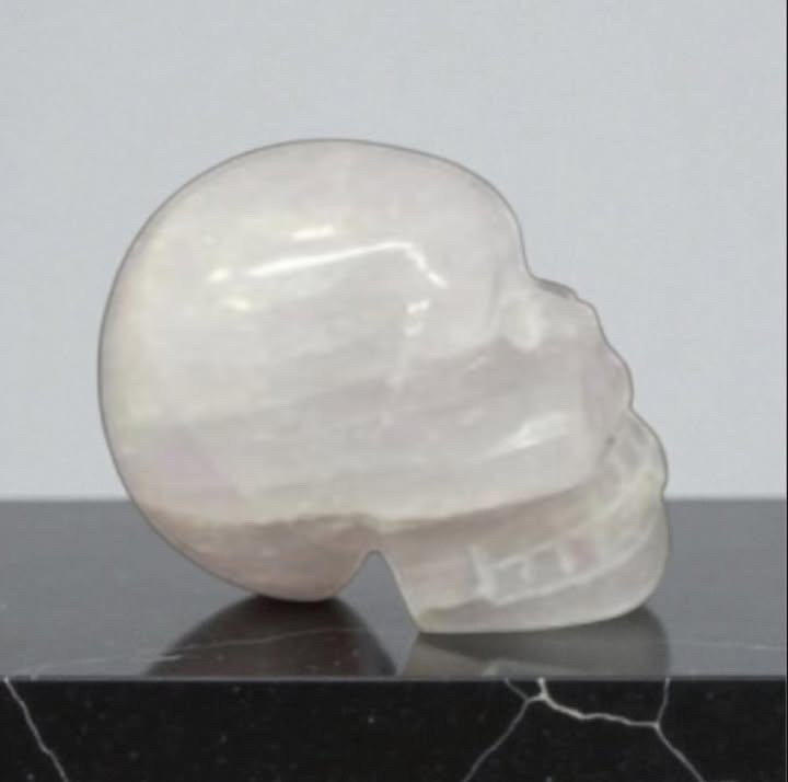 Crâne en Quartz Rose. Le Quartz Rose est un amplificateur de l’amour. Il favorise le fonctionnement du cœur, tant physiquement que sentimentalement ainsi que la circulation du sang. Il est d’une grande aide en cas d’insomnie et de dépression. Pierre de l’Amour.