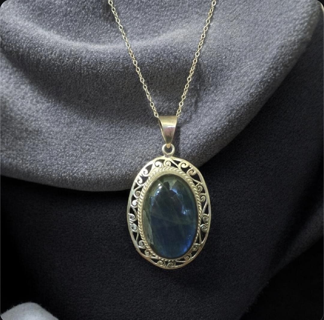 Pendentif en labradorite de Madagascar réalisé avec une pierre naturelle de grande qualité. En lithothérapie, la Labradorite est une pierre qui protège les personnes empathiques des problèmes des autres. Elle développe les dons et stimule les facultés d’auto-guérison. Elle favorise les amitiés. Idéale pour les thérapeutes. Pierre de protection.