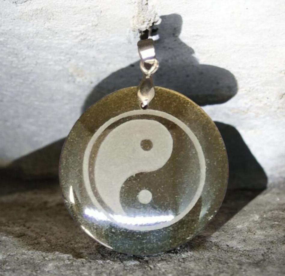 Pendentif avec pierre naturelle en Obsidienne Dorée et Yin /Yang. L’Obsidienne Dorée dissipe les blocages émotionnels et agit comme un bouclier protecteur. Cette pierre aide à la régénération . Le yin/Yang représentent les deux aspects opposés et complémentaires de tout ce qui existe.