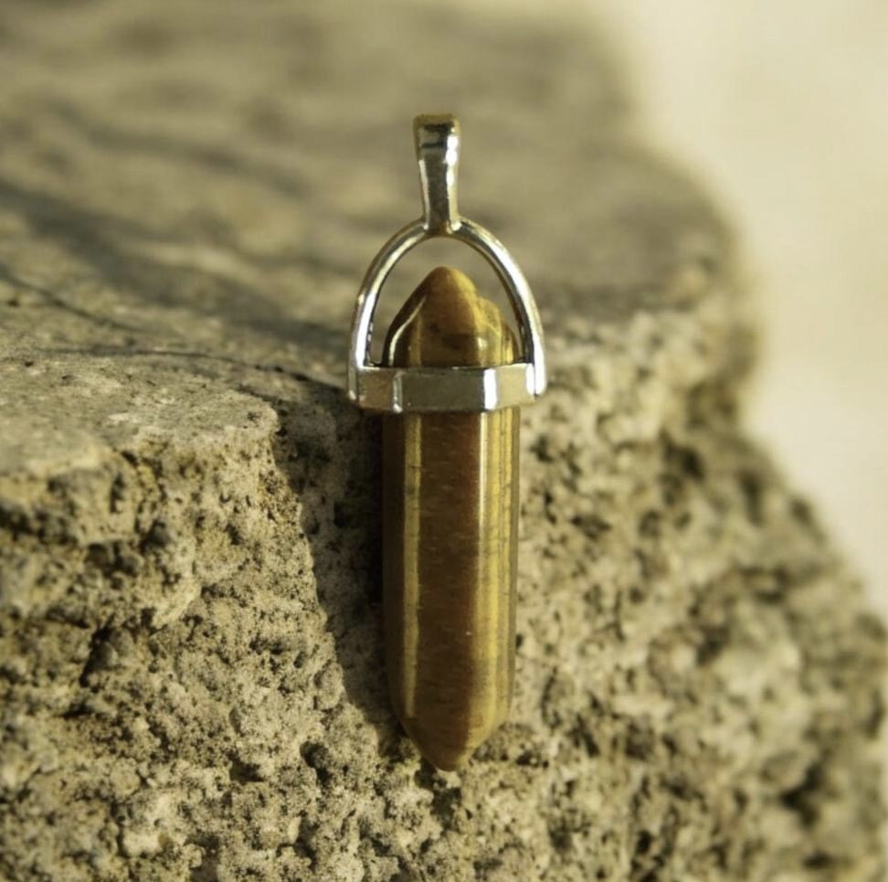Ce pendentif en œil de tigre, taillé en obélisque, est bien plus qu’un bijou.