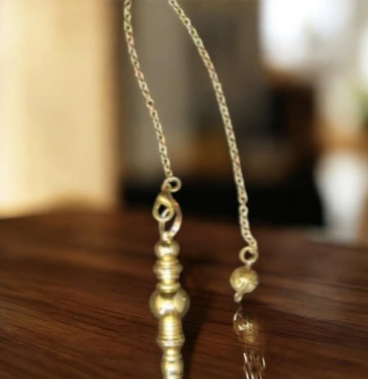 Pendule divinatoire en laiton pour tous travaux, il rééquilibre également les énergies. L’extrémité pointue en fait un instrument de précision remarquable