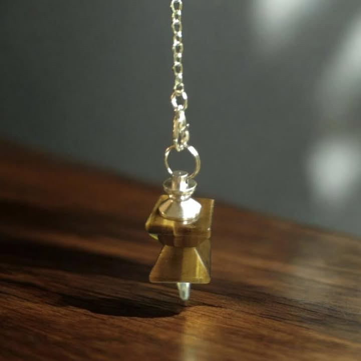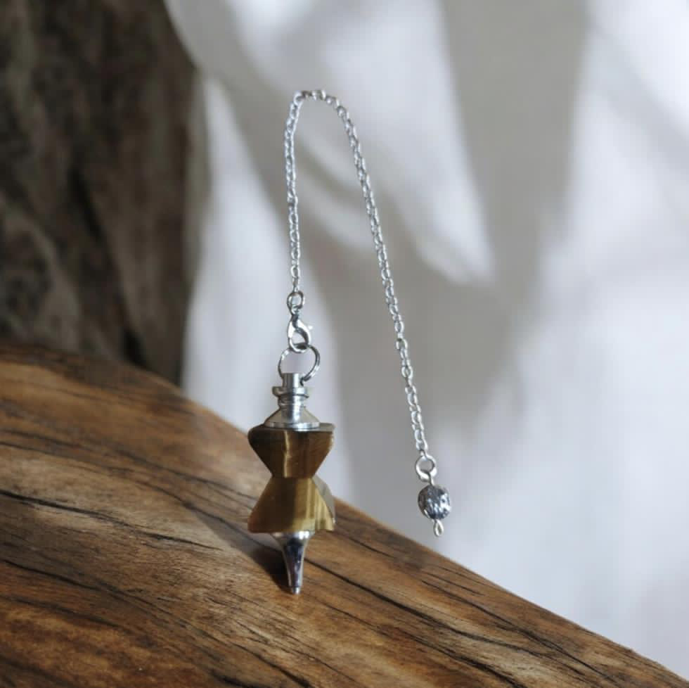 Pendule Sablier en Œil de Tigre. L’œil de tigre est une pierre de protection qui repousses les énergies négatives .