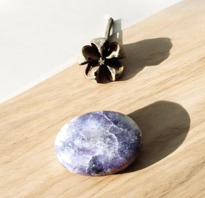 Pierre de soucis en Lépidolite pour apaiser les angoisses, les cauchemars et la dépression. Elle encourage à aller de l’avant et à prendre les bonnes décisions en calmant le mental et en évitant de ressasser ses soucis. Idéal pendant la période de révisions et d’examens.