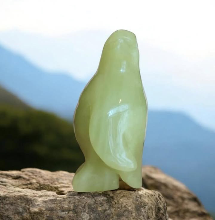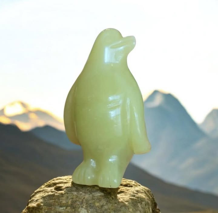 Pingouin en pierre naturelle Jade Citron. Elle est favorable aux relations amoureuse ainsi que d’amitié. C’est la pierre des reins par excellence et sur un plan plus spirituel elle apaise l’esprit et stimule les idées.