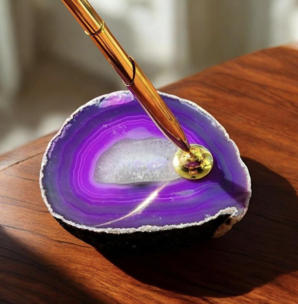 Embellissez votre espace de travail avec ce Porte-Stylo en Agate, une fusion parfaite entre élégance naturelle et raffinement. L’Agate est bénéfique, surtout pendant les périodes difficiles et stressantes.