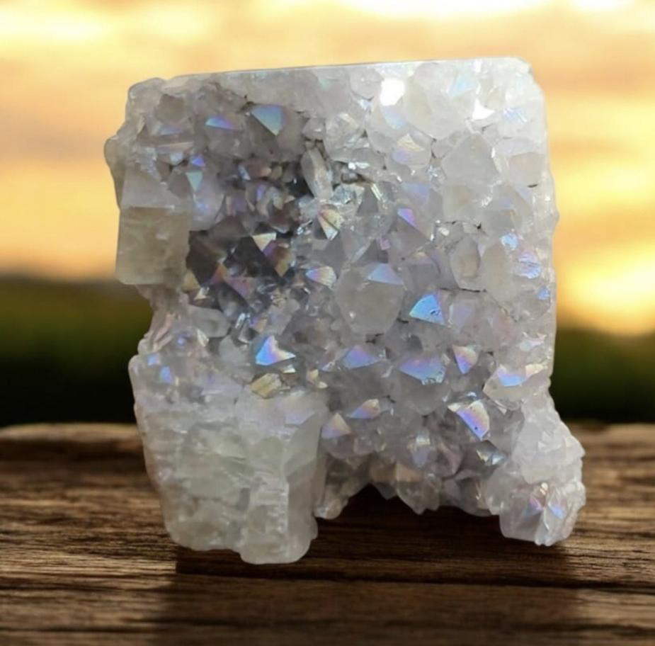 Quartz Aura. Les énergies sont décuplées à très haute fréquence vibratoires et spirituelles du au traitement à base d’or et de titane. Idéal Thérapeute.
